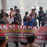 Sementara di halaman Kantor Dispora, massa aksi secara simbolis memasang spanduk dukungan dan membacakan pernyataan sikap untuk mendorong agar proyek rehabilitasi berjalan sesuai rencana.