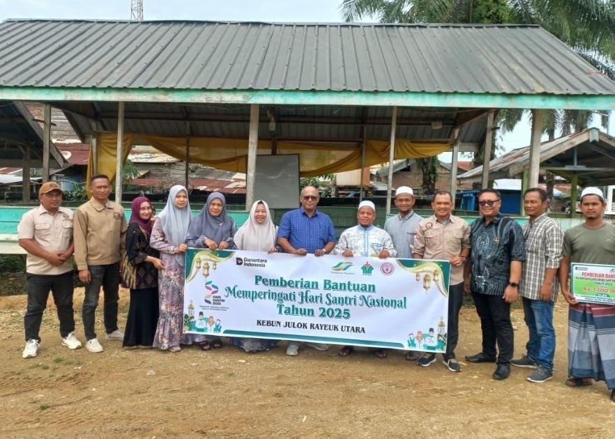 Aces, KBI – PTPN IV Regional VI bersama Ikatan Keluarga Besar Istri (IKBI) Kebun Julok Rayeuk Utara, entitas dari Holding Perkebunan Nusantara, menyalurkan bantuan sosial dalam rangka memperingati Hari Santri Nasional Tahun 2025. Bantuan senilai Rp3.000.000 diserahkan kepada Pesantren/Dayah Bustanul Hidayah yang berlokasi di Gampong Alue Ie Mirah, Kecamatan Indra Makmu, Kabupaten Aceh Timur.