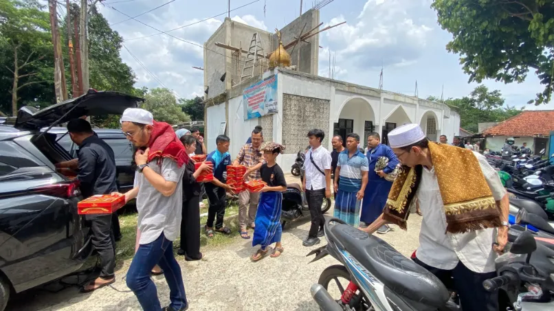 Ratusan paket nasi kotak dibagikan secara cuma-cuma kepada para jemaah Salat Jumat yang baru menunaikan ibadah, serta masyarakat umum, seperti pekerja, pedagang, dan warga yang melintas.
